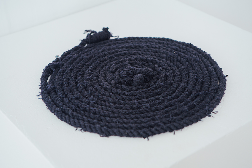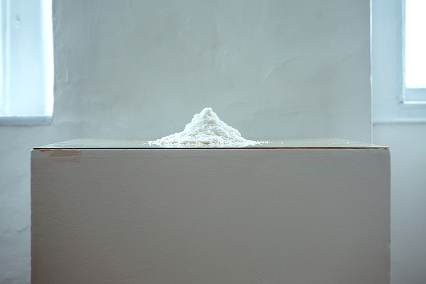 The Measure of a Man series of works took the concept of the ‘average man’ to develop a series of unconventional metrics for describing the human body. The wool from a standard ex-Government naval jumper was re-spun into rope (referencing Devonport’s historic ropery); the amount of salt present in the average male was extracted using a process of rapid evaporation from seawater gathered in Plymouth Sound. The process of making the works and the time invested in their creation was as important as the finished pieces themselves, and the passage of time made visible in some of the works designed to tarnish and corrode during the period of the exhibition.