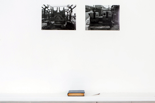 Shears, used for manually cutting metal [Steel]. Believed to be 1950s but no accurate records | Quercus Regius: 00:58-01:29 [Digital film, black & white, 31 minute loop] | Quercus Regius: 00:58-01:29 [Digital film, black & white, 06:51 minute edited version] | Hurt Book [Digital print and various cuts, on Fabriana Liscia 160gsm & Revive Recycled Gloss 115gsm, stitch-bound] | Belli Dura Despicio (Broadside) [29.7km line on 150 broadside sheets. Digital print on 55 gsm newsprint] | Belli Dura Despicio (Broadside) [29.7km line on 150 broadside sheets. Digital print on 55 gsm newsprint] |